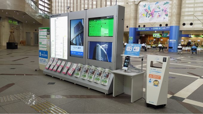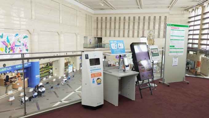 そこで、新年度予算で対策の一層の強化と出入口の混雑を防止するため、自動検温器と手指消毒器の導入を検討していたところ、CLEAN&GOの性能と視認性の高いデザインにご理解をいただき、導入を決定していただくこととなりました。