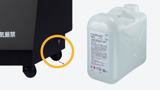 また、エタノール濃度が異なる2種類の除菌液の用意があるため、消防法において危険物に該当しない除菌液を選ぶこともできます。CLEAN&GO専用の除菌液は、植物由来の発酵エタノールの他、ヒアルロン酸などの食品添加物や化粧品として使われる原材料を使用している国産の除菌液です。